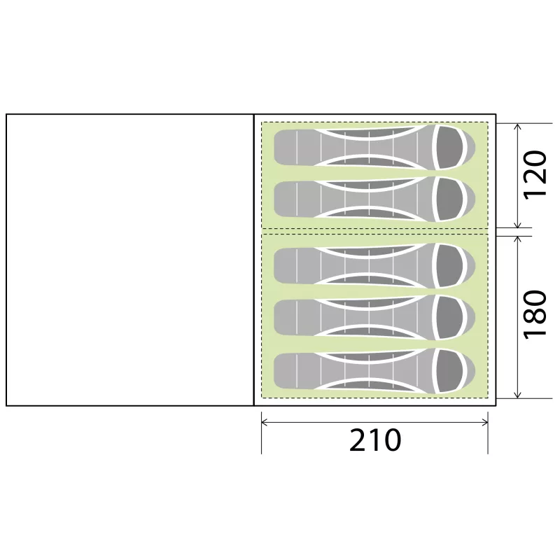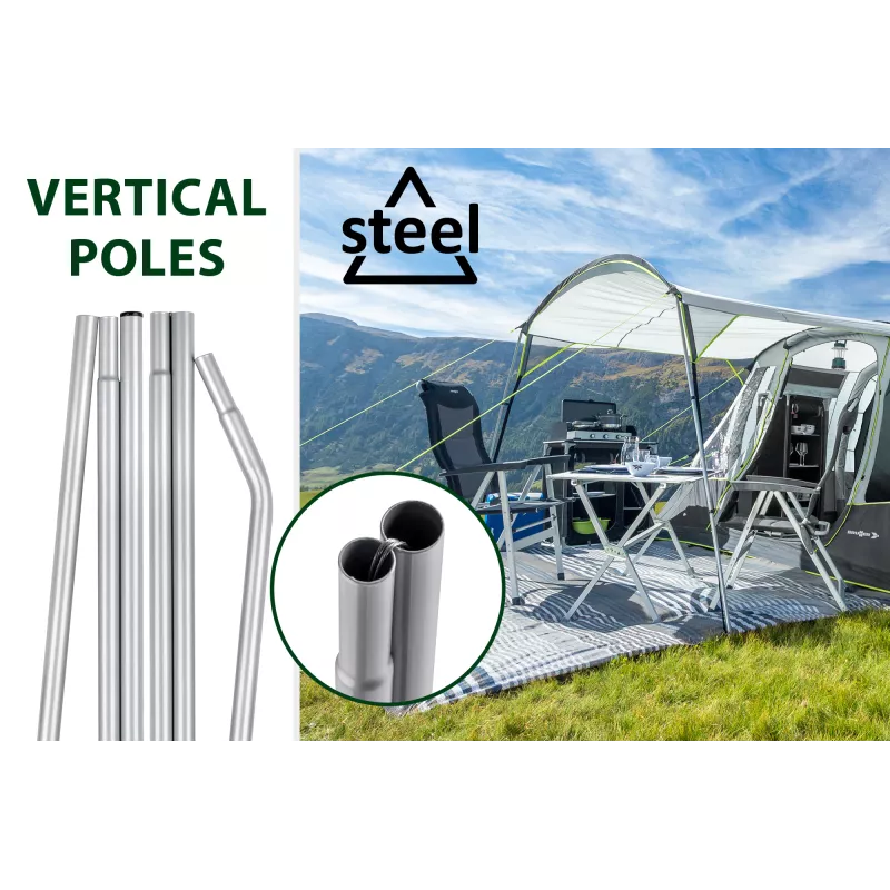 Grazie all’ottimo rapporto spazio/superficie, questa tenda rappresenta una soluzione ideale per famiglie che cercano ampi volumi abitabili senza rinunciare a una gestione pratica e razionale degli spazi.