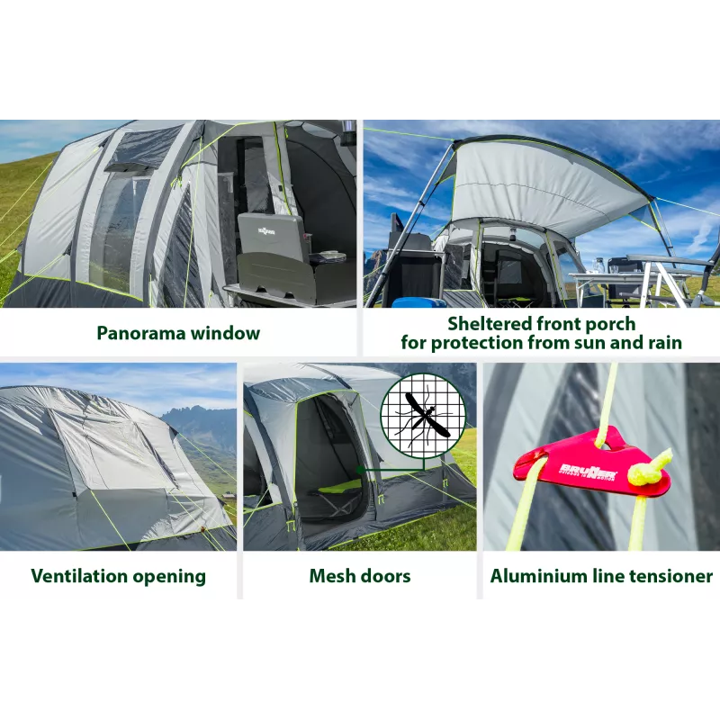 La Bullet 5 AIRtech unisce rapidità di montaggio, spazi ben organizzati e comfort elevato, offrendo una tenda family affidabile e funzionale per il campeggio in famiglia.