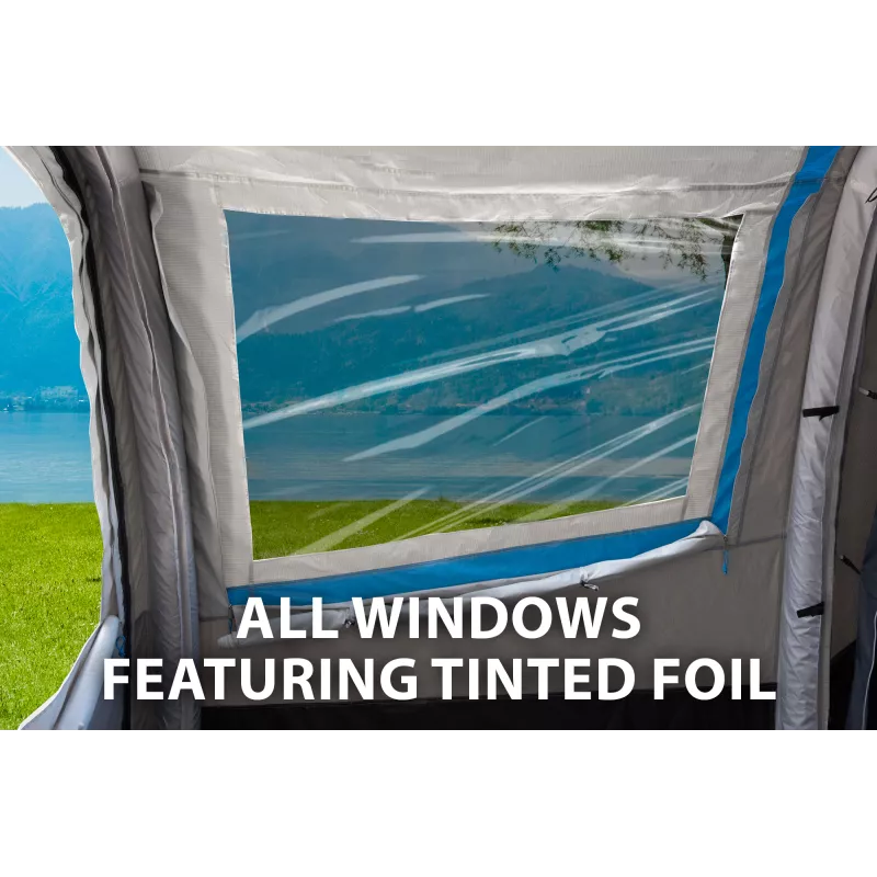 La tenda dispone di ingresso laterale e di una grande finestra anteriore, entrambi dotati di zanzariere richiudibili, che consentono un ricambio d’aria continuo senza l’ingresso di insetti. L’ingresso laterale può essere inoltre sollevato a tettuccio parasole, creando una piacevole zona d’ombra all’esterno.