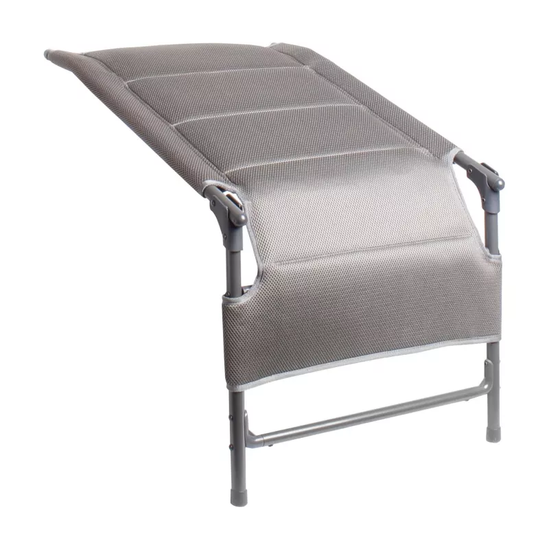 La struttura è costruita in alluminio leggero ad alta resistenza, con un meccanismo di chiusura a compasso che lo rende incredibilmente sottile una volta riposto. È la soluzione ideale per chi ha poco spazio nel gavone del camper o nel bagagliaio dell'auto, ma non vuole rinunciare alla possibilità di trasformare la propria sedia in una poltrona relax completa. È disponibile in due varianti cromatiche coordinate: C07 (Grigio) moderno, luminoso e perfetto per set outdoor dai colori chiari e C09 (Black/Dark Grey) tecnico ed elegante, ideale per un abbinamento perfetto con le poltrone Aravel scure.