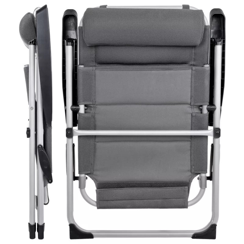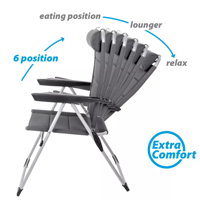 Il cuore del suo design è l'innovativo telaio con base a forma di U. Questa particolare conformazione della struttura in alluminio non solo conferisce alla sedia un'estetica moderna e solida, ma assicura una distribuzione del peso ottimale e una grande stabilità su superfici diverse, evitando che le gambe affondino in terreni soffici come erba o sabbia. È la scelta perfetta per chi cerca una sedia che trasmetta sicurezza al primo utilizzo.
