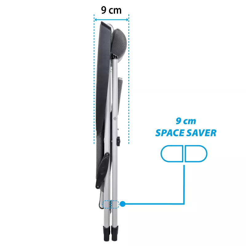 Nonostante la sua robustezza, la sedia è stata studiata per minimizzare l'ingombro: le dimensioni di stoccaggio ridotte permettono di riporla facilmente nel bagagliaio o nei gavoni del camper, rendendo ogni spostamento semplice e senza stress.