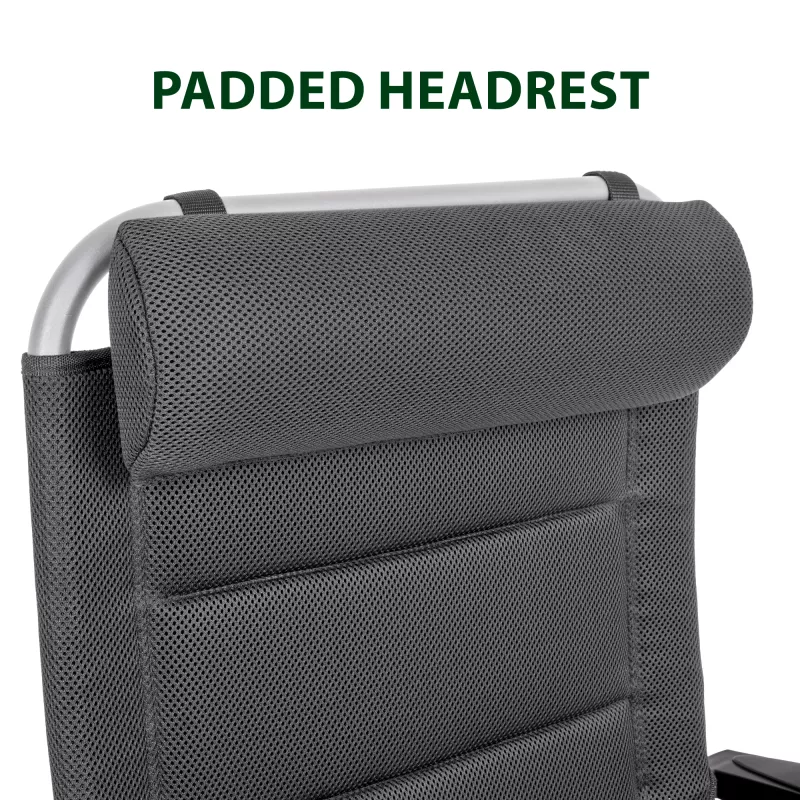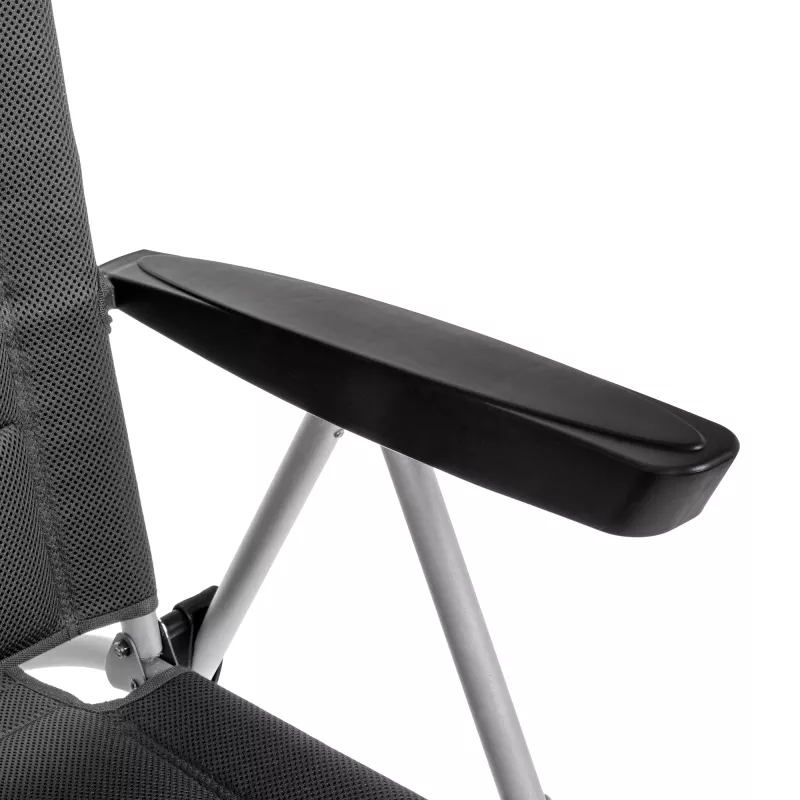 Il comfort a lungo termine è affidato al pregiato tessuto 3Durafeel. Questa maglia tecnica tridimensionale è celebre per la sua lunga durabilità e resistenza agli agenti atmosferici, mantenendo le sue proprietà elastiche e traspiranti anche dopo un uso intensivo in condizioni difficili. Per elevare ulteriormente l'esperienza di riposo, la Aravel Camper include un poggiatesta imbottito di serie, trasformando una sedia da viaggio in una vera postazione relax dove abbandonare le tensioni del collo e delle spalle.