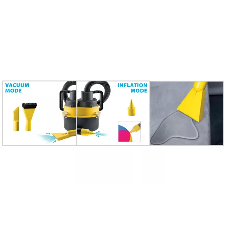 La struttura è realizzata in robusto materiale plastico, pensata per resistere all’uso frequente e alle sollecitazioni tipiche dell’ambiente outdoor. Il tubo flessibile consente di raggiungere facilmente anche gli angoli più difficili, mentre il lungo cavo di alimentazione a 12V permette un utilizzo comodo collegandosi direttamente alla presa del veicolo.