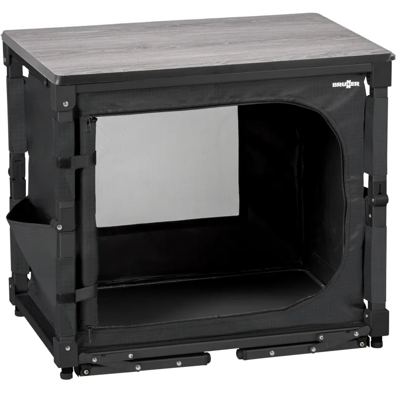 - Organizzazione Interna: L'armadietto in tessuto di alta qualità nasconde un capiente vano portaoggetti con un ripiano interno in MDF, rinforzato da un bordo perimetrale in metallo per sostenere pentole e accessori pesanti senza deformarsi.
