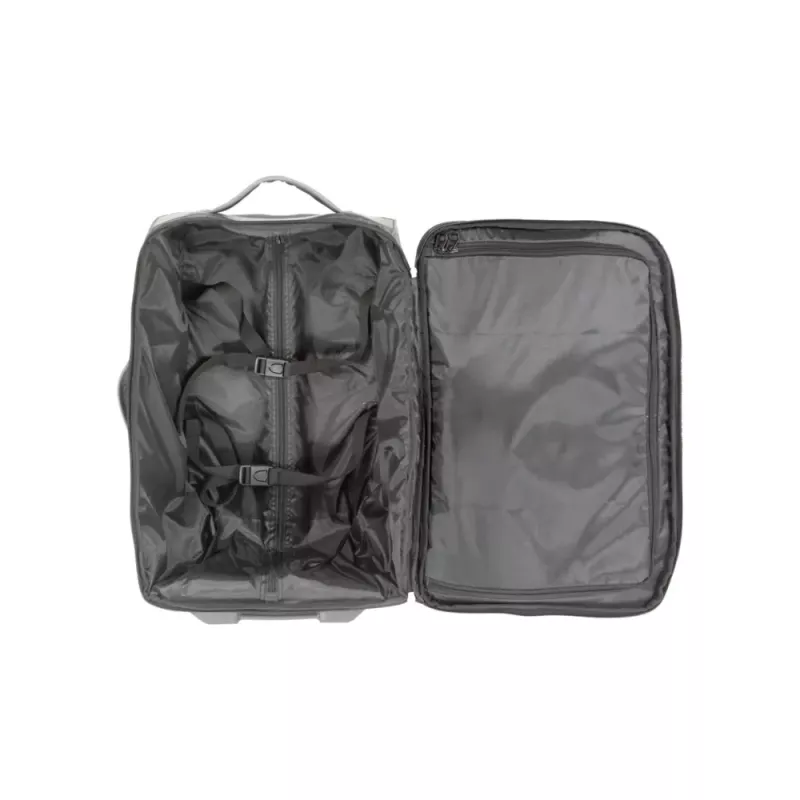 Lo scomparto principale ampio e facilmente accessibile consente di organizzare rapidamente abbigliamento e attrezzatura, mentre le tasche laterali e frontali offrono spazio aggiuntivo per piccoli oggetti e accessori. Le maniglie rinforzate e la tracolla regolabile garantiscono un trasporto confortevole anche a pieno carico, rendendola una compagna affidabile sia per viaggi brevi che per l’uso quotidiano.