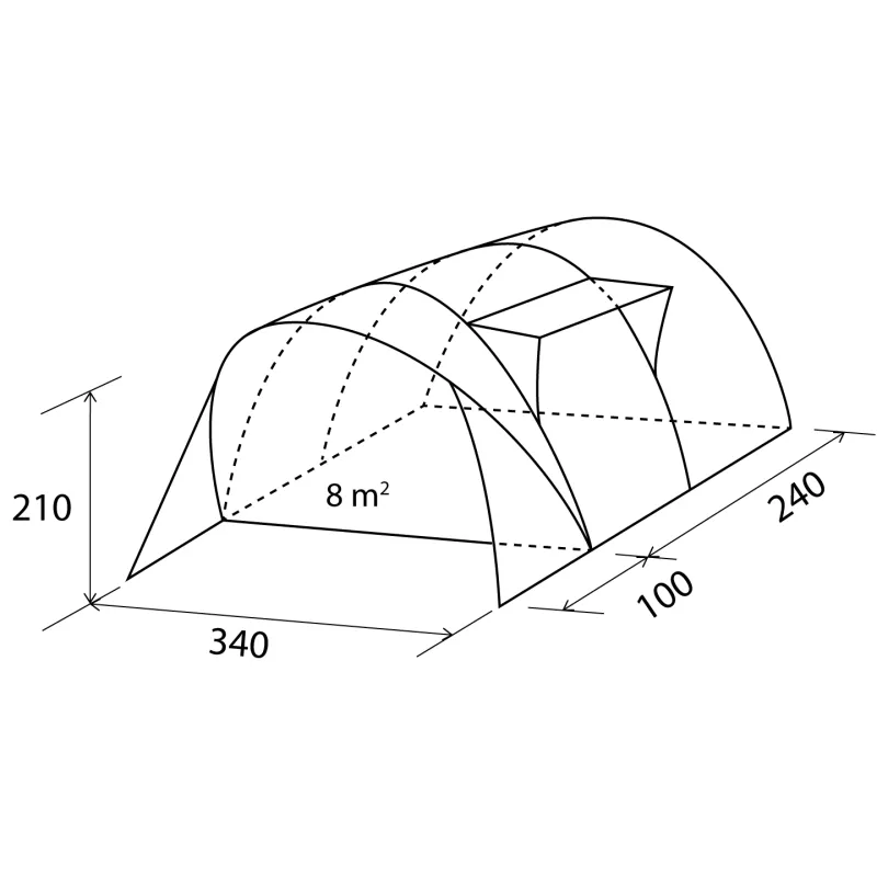 La veranda è dotata di parete anteriore removibile, che permette di modulare l’apertura dello spazio, e di una entrata laterale con tettuccio di protezione, ideale per un accesso comodo anche in caso di pioggia o sole intenso. Il catino cucito, incluso di serie, insieme alla balza perimetrale, garantisce una protezione efficace da umidità, sporco e correnti d’aria.
