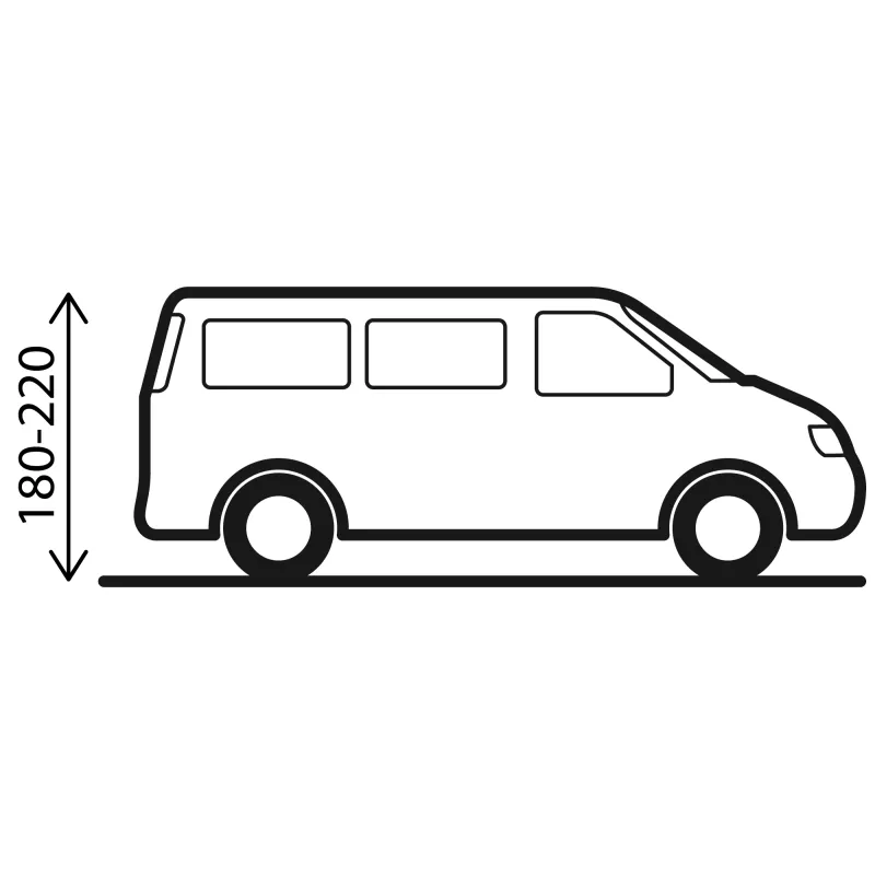 Il collegamento al veicolo può avvenire tramite profilo di scorrimento, asta di collegamento oppure corrimano con nastri a chiusura a contatto, rendendo la veranda compatibile con veicoli aventi altezza grondaia compresa tra 180 e 220 cm.