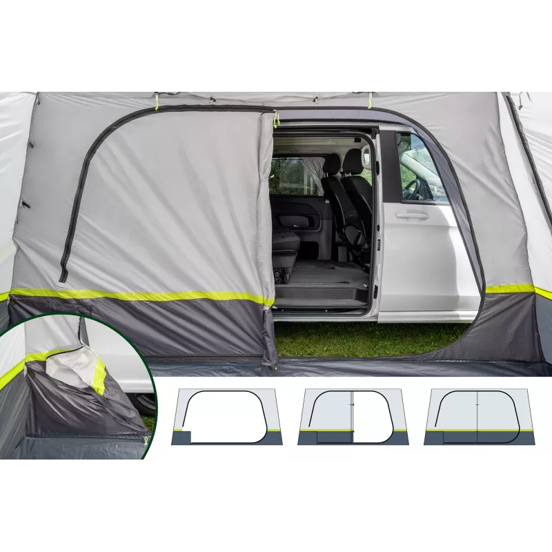 La Brunner Rambler è una veranda spaziosa e di concezione moderna, progettata per van e minibus e pensata per offrire comfort abitativo elevato, luminosità e massima flessibilità in campeggio. La struttura indipendente e collaudata consente di utilizzare il veicolo per escursioni o spostamenti senza dover smontare la veranda, rendendola ideale per soggiorni dinamici.