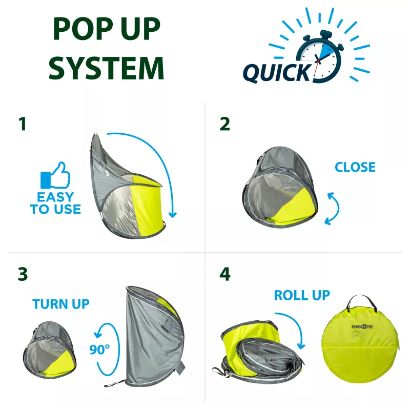 Il Brunner Bayou è un parasole a conchiglia con sistema Pop-Up, progettato per offrire protezione immediata e praticità durante le giornate al mare o all’aperto. Grazie al meccanismo di apertura automatica, il montaggio è rapido e intuitivo, permettendo di creare in pochi istanti uno spazio riparato dal sole e dal vento.