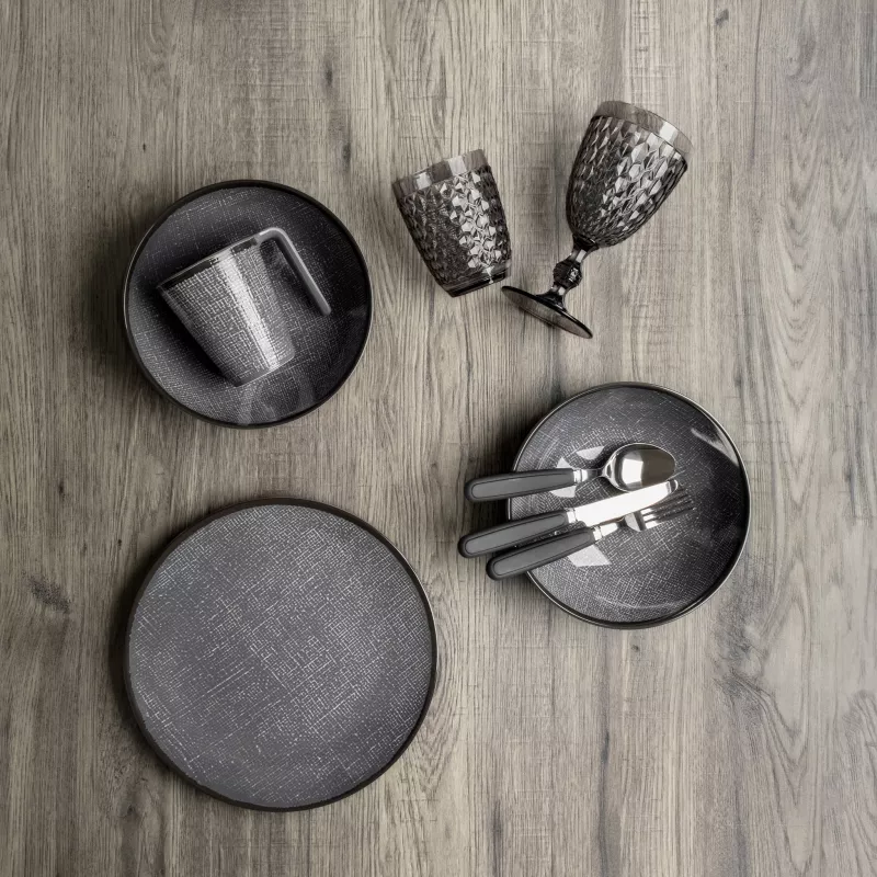 - Materiale: Melamina di alta qualità, finitura “Stone Touch” che imita la porcellana ma garantisce leggerezza, resistenza agli urti e facilità di pulizia.