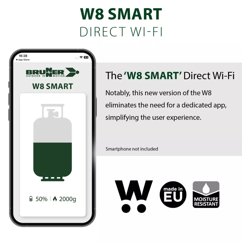 Il Brunner W8 Smart Gas Control è un innovativo monitor elettronico del livello delle bombole di gas, progettato per offrire controllo, sicurezza e tranquillità durante i viaggi in camper, van e caravan. Il sistema misura in modo semplice e preciso il livello di riempimento delle bombole e trasmette i dati direttamente allo smartphone o tablet tramite connessione Wi-Fi, consentendo di avere sempre sotto controllo la disponibilità di gas.