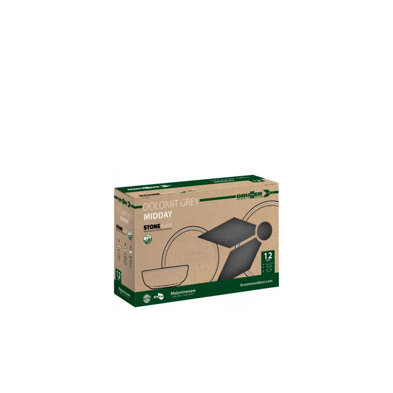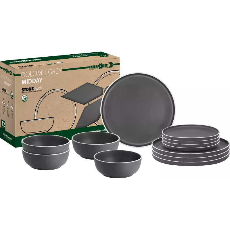 Set Piatti Brunner Midday Dolomit Grey – 12 Pezzi in Melamina