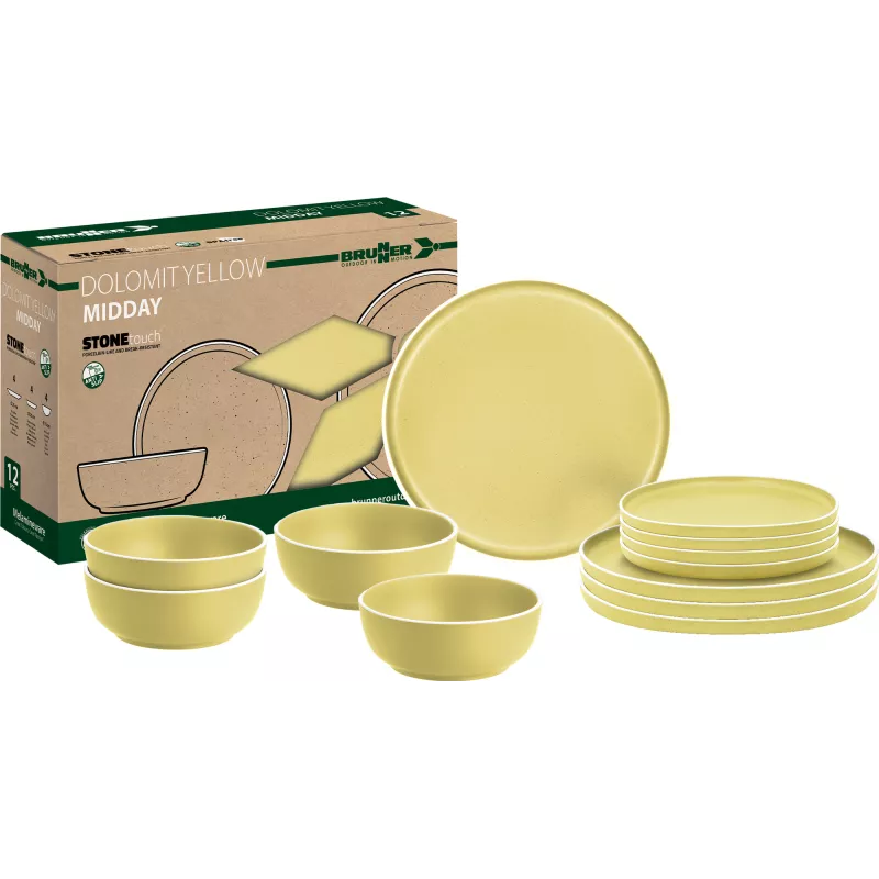 Set Piatti Brunner Midday Dolomit Yellow – 12 Pezzi in Melamina