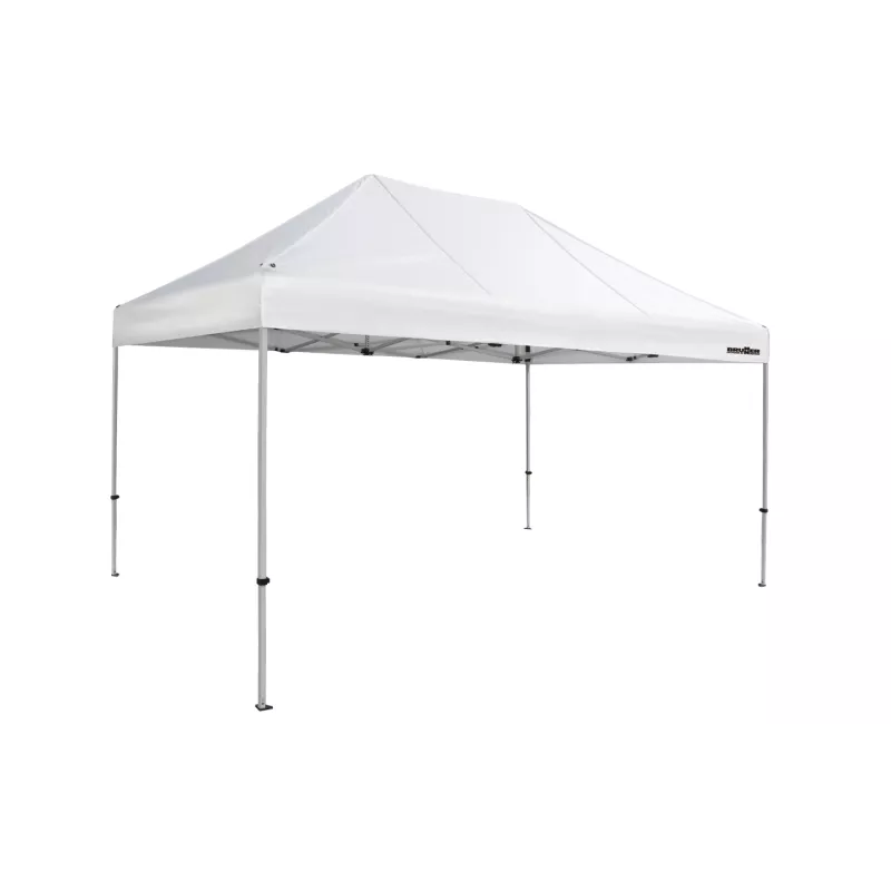 La struttura a montaggio rapido con telaio pieghevole consente un’apertura semplice e immediata, senza necessità di strumenti. Dotato di palo centrale per una massima inclinazione del tetto che favorisce il deflusso dell'acqua. Struttura molto stabile in alluminio con gambe regolabili in altezza. Tetto realizzato in 100% poliestere a spalmatura impermeabile. Cuciture nastrate.