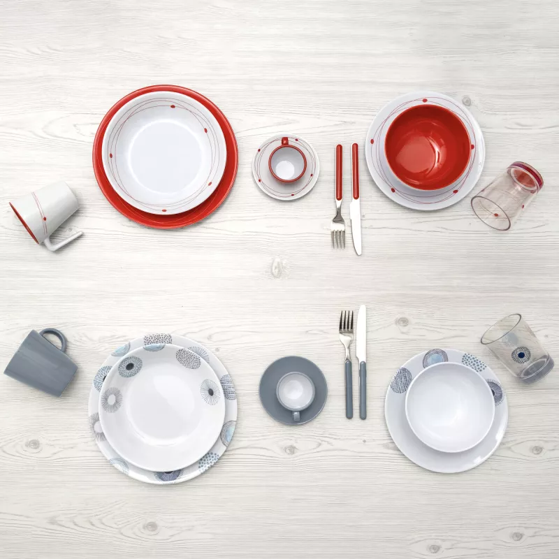 - Materiale: melamina di alta qualità o materiale Resylin (ABS-based) resistente agli urti, al calore fino a 90 °C e utilizzabile anche in freezer.