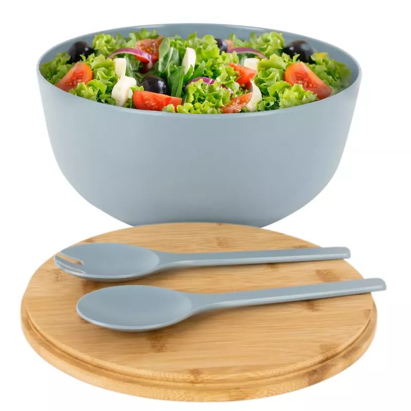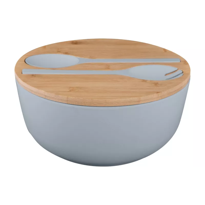 Il set GreenKick con ciotola antiscivolo e posate integrate è ideale per servire insalata, verdure o piatti freddi con stile anche all’aperto. Realizzato in melamina di alta qualità con finitura sobria e moderna nella variante Grigio (C06), unisce estetica e praticità: la base antiscivolo assicura maggiore stabilità, le posate incluse offrono comodità immediata e il materiale è resistente, leggero e lavabile.