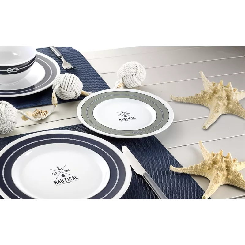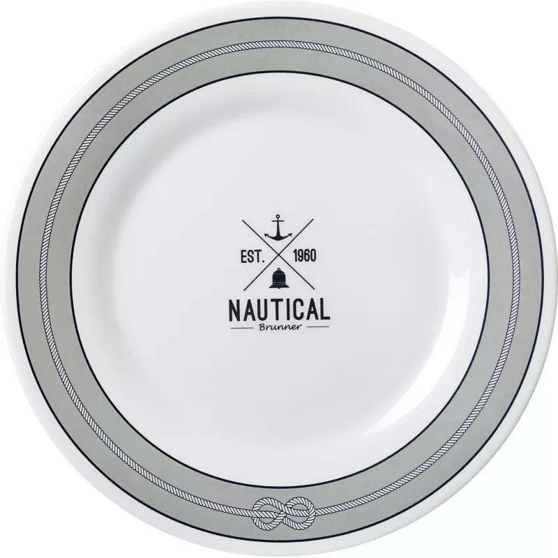 Il piatto dessert Nautical della collezione Nautical di Brunner, con diametro di 21 cm, unisce design raffinato dal tema nautico alle caratteristiche tecniche pensate per l’uso outdoor, in campeggio, camper, roulotte o verande.