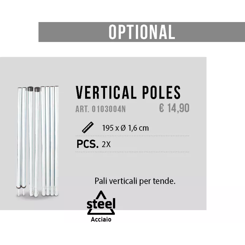 - Parete anteriore alzabile a tettuccio parasole (2 pali inclusi)
