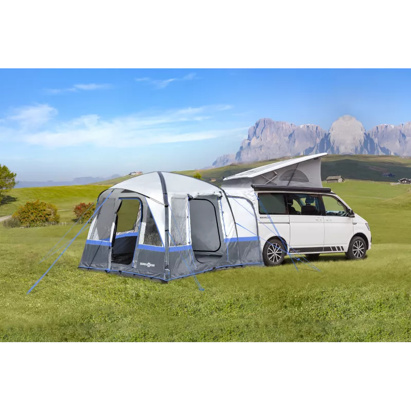 La Brunner Indipendence è una tenda posteriore universale autoportante, progettata per l’utilizzo con minibus e van dotati di portellone posteriore. Grazie all’innovativo telaio gonfiabile A.I.R.Tech, la tenda si monta in pochissimo tempo, senza l’impiego di pali tradizionali, offrendo al campeggiatore massima praticità e libertà di movimento.