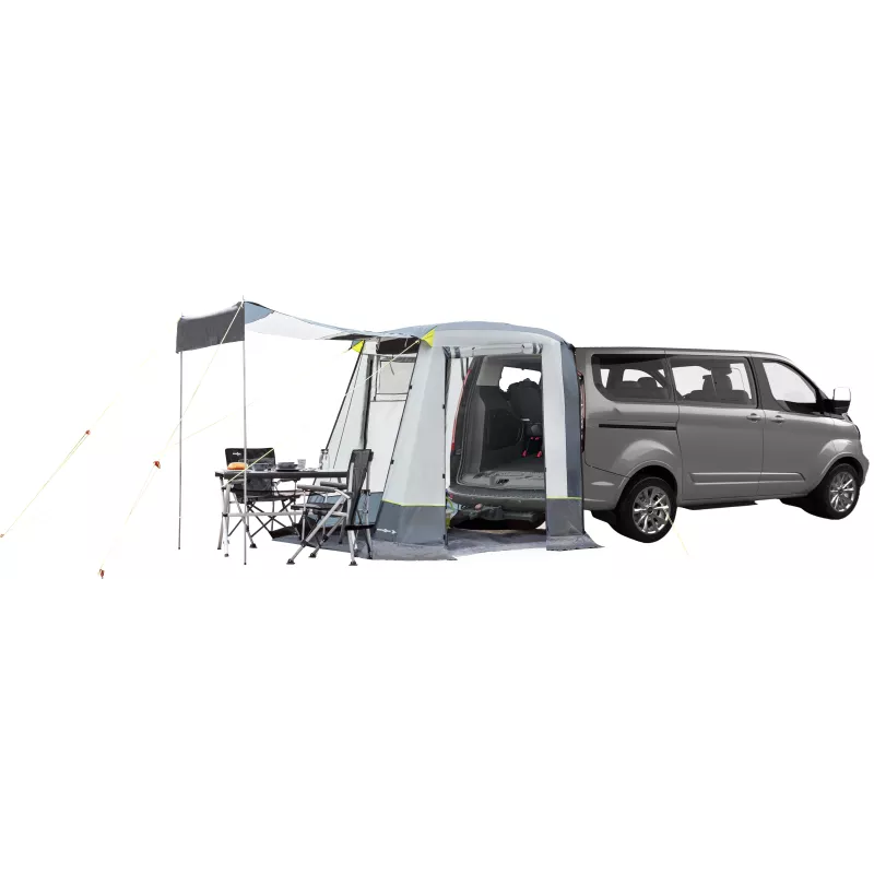 La Brunner Foyer è una tenda posteriore senza telaio, progettata specificamente per essere fissata in modo continuo al portellone posteriore dei Ford Transit Custom e Ford Tourneo Custom (dal 2023 in poi). Pensata per ampliare in modo intelligente lo spazio del veicolo, offre una comoda zona pranzo e di stivaggio, migliorando notevolmente la vivibilità del van durante il campeggio.