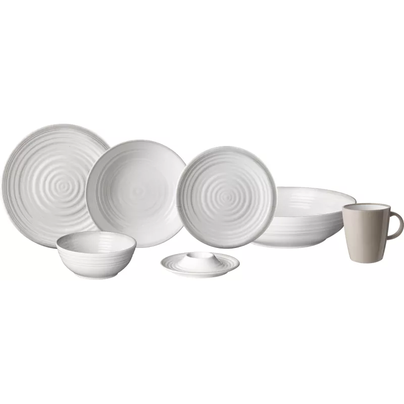 - Materiale: Melamina di alta qualità, finitura “Stone Touch” che imita la porcellana ma garantisce leggerezza, resistenza agli urti e facilità di pulizia.