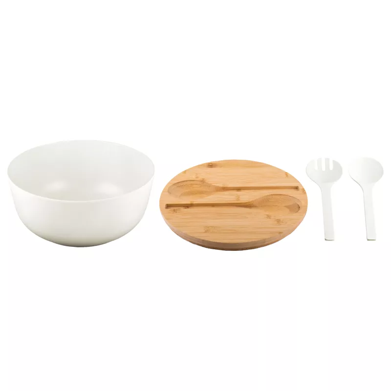 Il set GreenKick con ciotola antiscivolo e posate integrate è ideale per servire insalata, verdure o piatti freddi con stile anche all’aperto. Realizzato in melamina di alta qualità con finitura sobria e moderna nella variante Savana (C4P), unisce estetica e praticità: la base antiscivolo assicura maggiore stabilità, le posate incluse offrono comodità immediata e il materiale è resistente, leggero e lavabile.