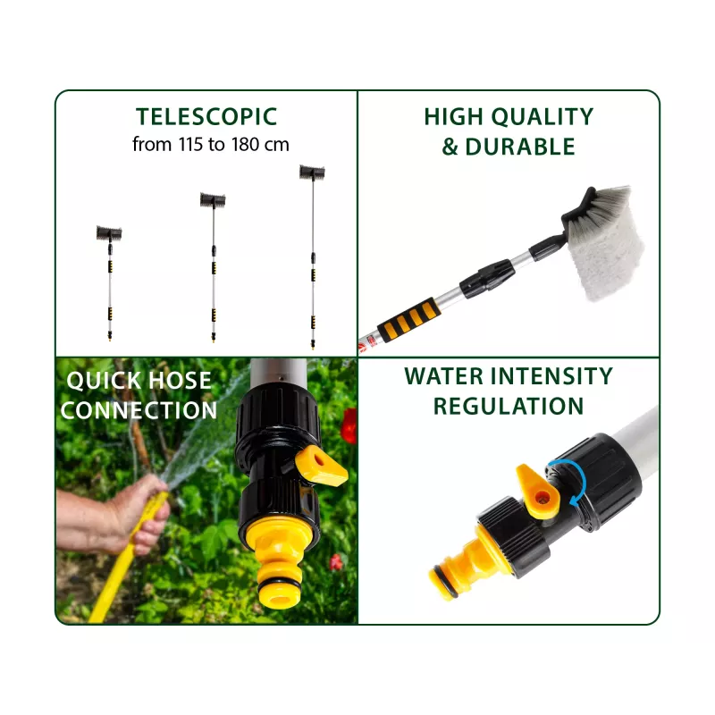 - Design ergonomico: La Spazzola Moppy telescopica per lavaggio veicoli con manico in alluminio e raccordo rapido è progettata per essere comoda da impugnare, offrendo una presa sicura che facilita l'uso durante le operazioni di pulizia.