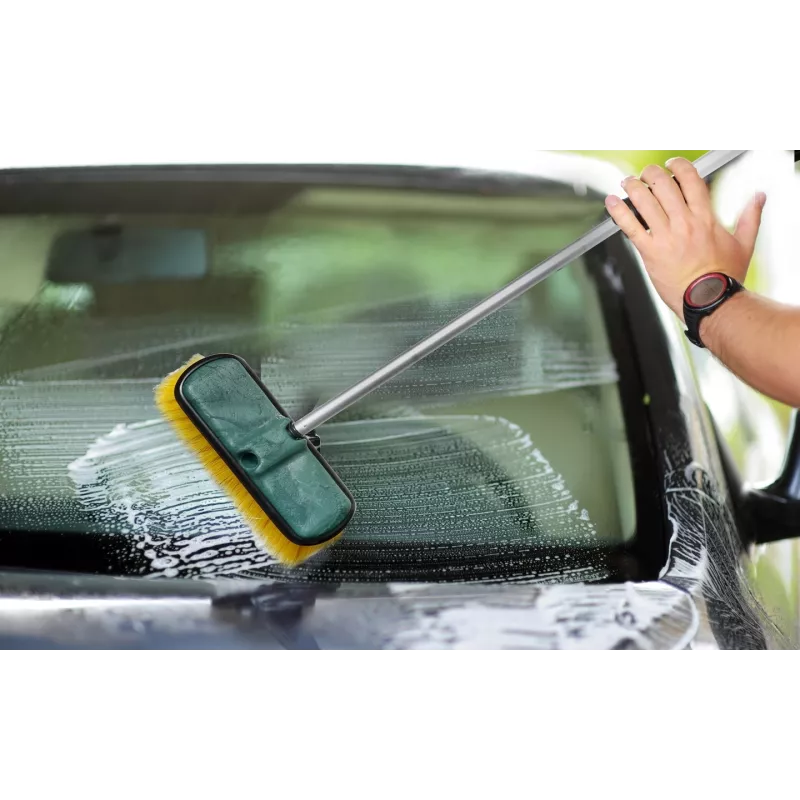Le manopole in espanso garantiscono una presa confortevole e sicura anche in presenza di acqua, mentre la spazzola filettata con setole delicate assicura una pulizia efficace senza rischiare di graffiare le superfici trattate. Con una larghezza di 25 cm, la testa della spazzola permette di coprire ampie aree in meno passaggi, ottimizzando tempi e risultati.