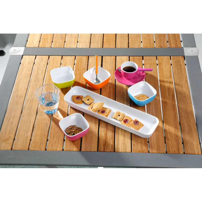 - Realizzato in melamina di alta qualità, resistente al calore, all’umidità e agli urti: ideale per l’uso alimentare in ambienti outdoor.