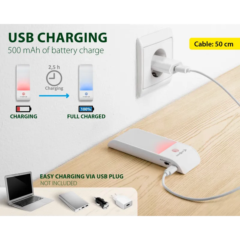 | ATHOME | 7530031N | Lithum 500mAH 3,7V | 12 | 240 lumen | 12 x 4,3 x 1,7 cm | 80 g | 0,75W | 2 month (Auto) / 4h (On) | 2,5h |