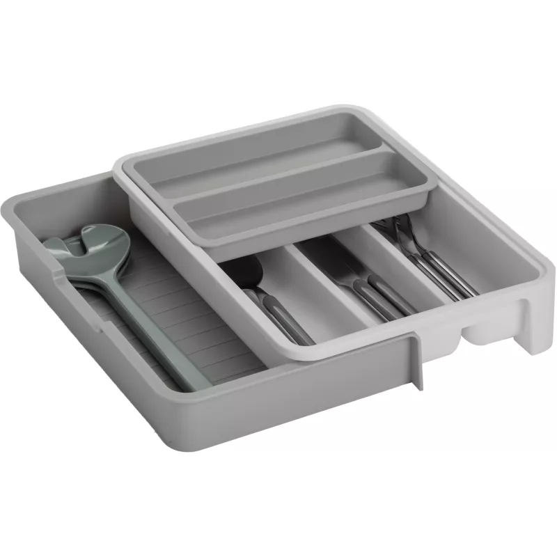 Realizzato in materiale plastico resistente, il portaposate Mantis è leggero, stabile e facile da pulire, ideale per l’uso quotidiano outdoor. La struttura suddivisa in scomparti permette una disposizione ordinata di coltelli, forchette, cucchiai e piccoli accessori, contribuendo a una mise en place pratica e funzionale anche in spazi ridotti.