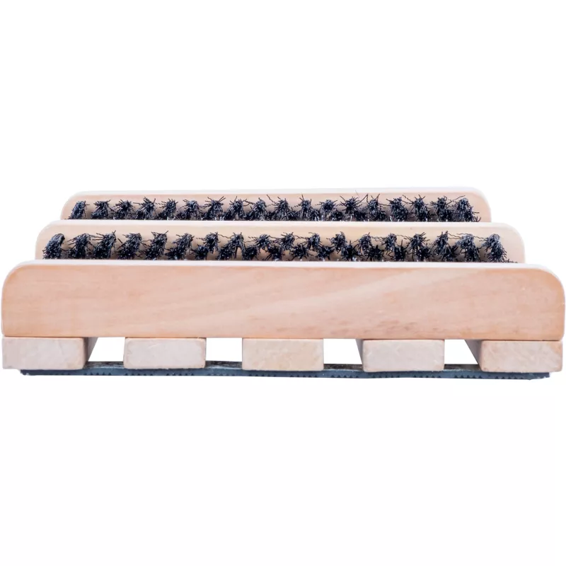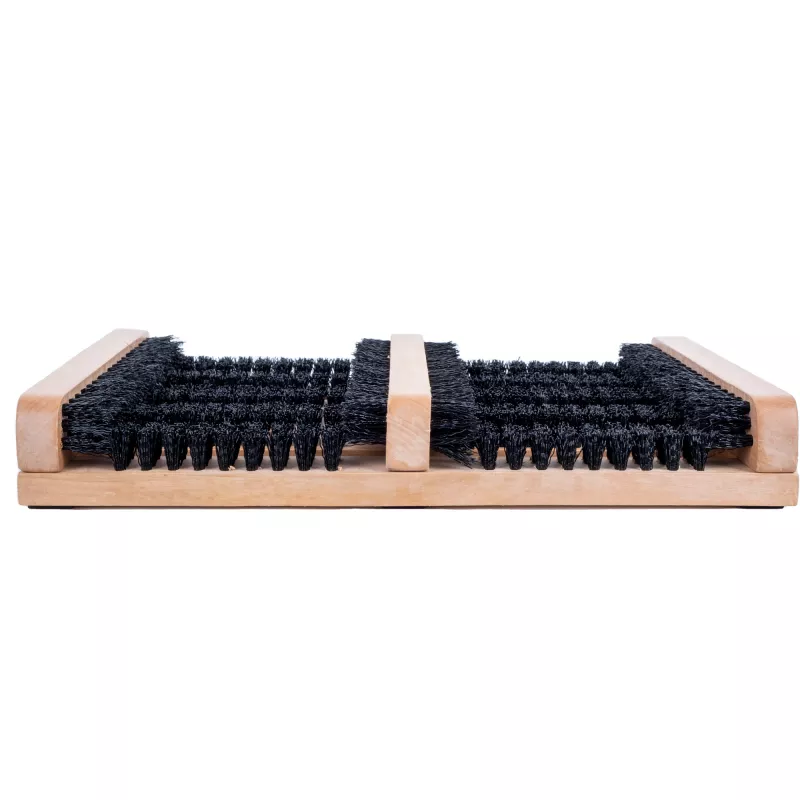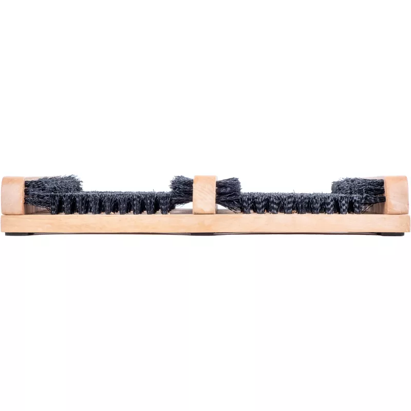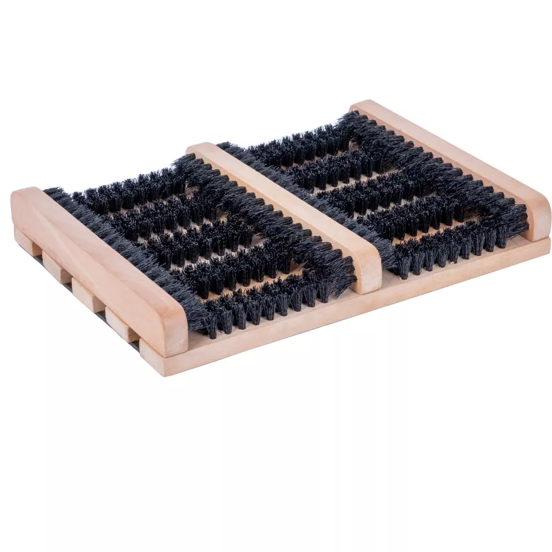 La forza pulente di questo zerbino risiede nell'integrazione di numerose spazzole a setole rigide inserite tra i listelli di legno. Questa configurazione permette di pulire non solo la suola della scarpa, ma anche i bordi laterali, rimuovendo con estrema efficacia fango, terra, ghiaia e neve. È la soluzione ideale per chi pratica trekking, vive il campeggio in stagioni umide o frequenta zone boschive dove uno stuoino tradizionale risulterebbe insufficiente.