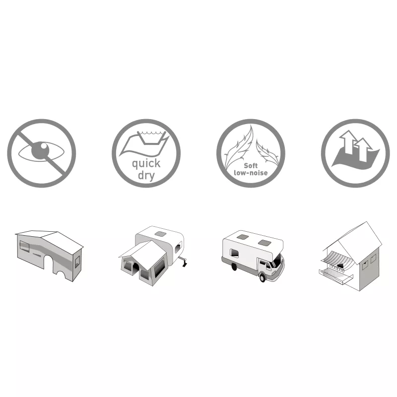 La versatilità è uno dei punti di forza di questo modello, che viene proposto in tre diverse misure per adattarsi a ogni tipo di porta: la versione compatta da 56 x 185 cm (perfetta per le porte dei camper), la standard da 100 x 205 cm e la generosa variante da 120 x 205 cm per gli ingressi più ampi o le verande. L'installazione è rapida e intuitiva grazie al pratico profilo di supporto superiore, che permette di agganciarla e rimuoverla in pochi secondi durante le fasi di preparazione del viaggio.