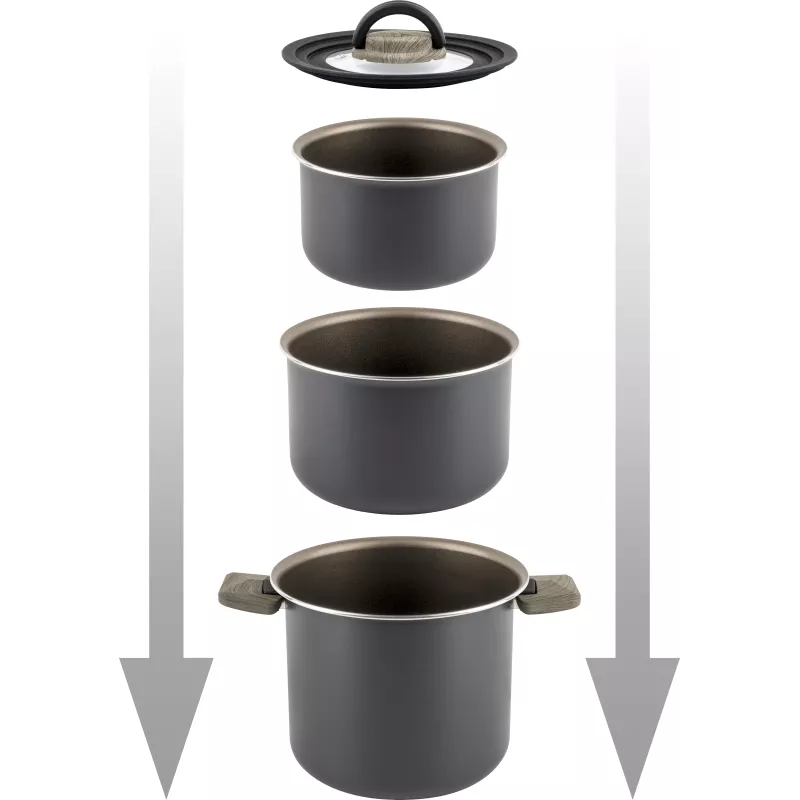 La Brunner Torralta Spacemaster Ø 18 è una popote compatta e funzionale, progettata per soddisfare le esigenze di campeggiatori, vanlife e nautica, dove ottimizzare lo spazio è fondamentale. Il design intelligente consente di impilare ordinatamente gli elementi, riducendo al minimo l’ingombro durante il trasporto e lo stivaggio.