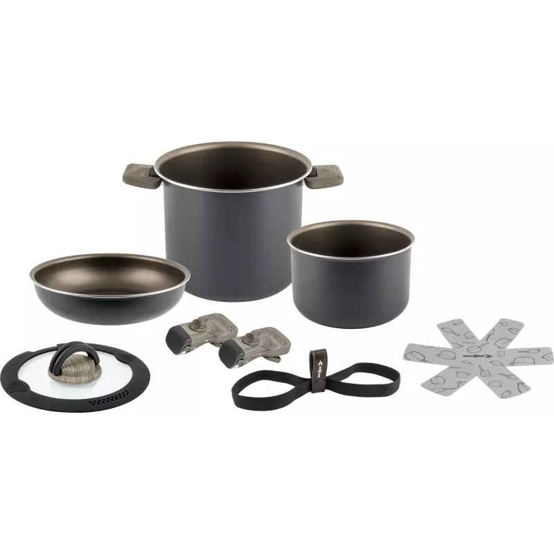 La Brunner Torralta Spacemaster Ø 20 è una popote da campeggio pratica e salvaspazio, pensata per chi viaggia in camper, van o barca e necessita di una cucina compatta ma completa. Il design Spacemaster consente di impilare perfettamente tutti gli elementi, riducendo l’ingombro e facilitando lo stivaggio anche in spazi limitati.