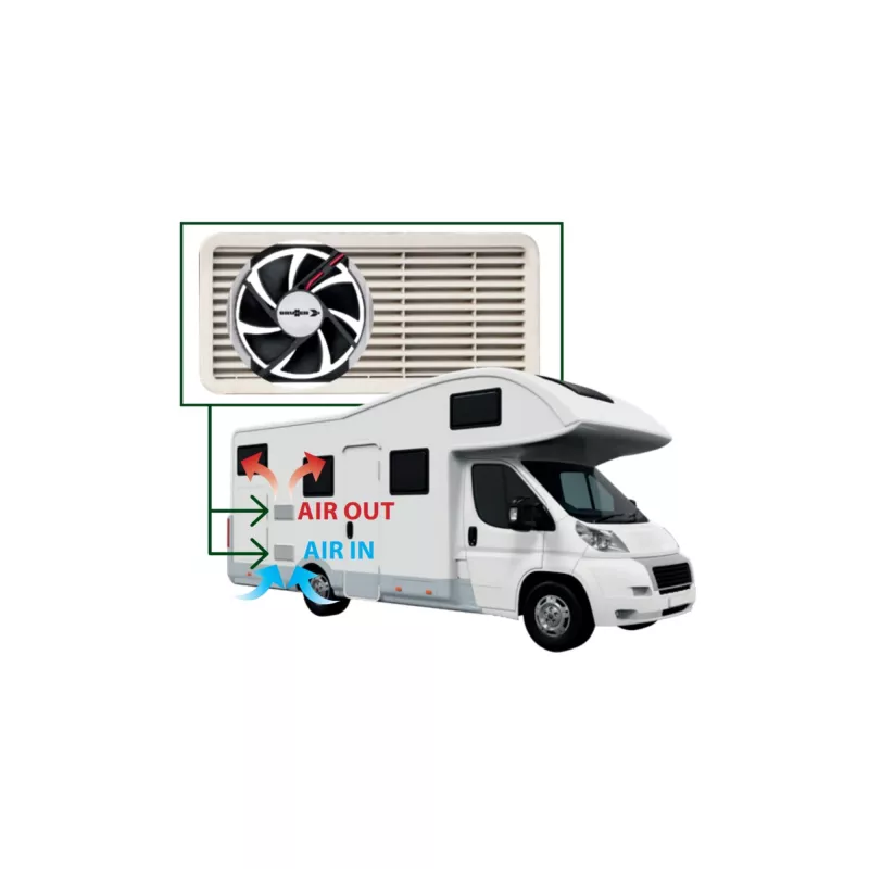 Il Brunner Vento NG 120 è un ventilatore per frigorifero ad alte prestazioni progettato per migliorare in modo efficace la dissipazione del calore nei frigoriferi installati su camper e caravan. Grazie al sistema di ventilazione intelligente e al controllo elettronico della temperatura, contribuisce a mantenere prestazioni di raffreddamento costanti anche in condizioni climatiche elevate.